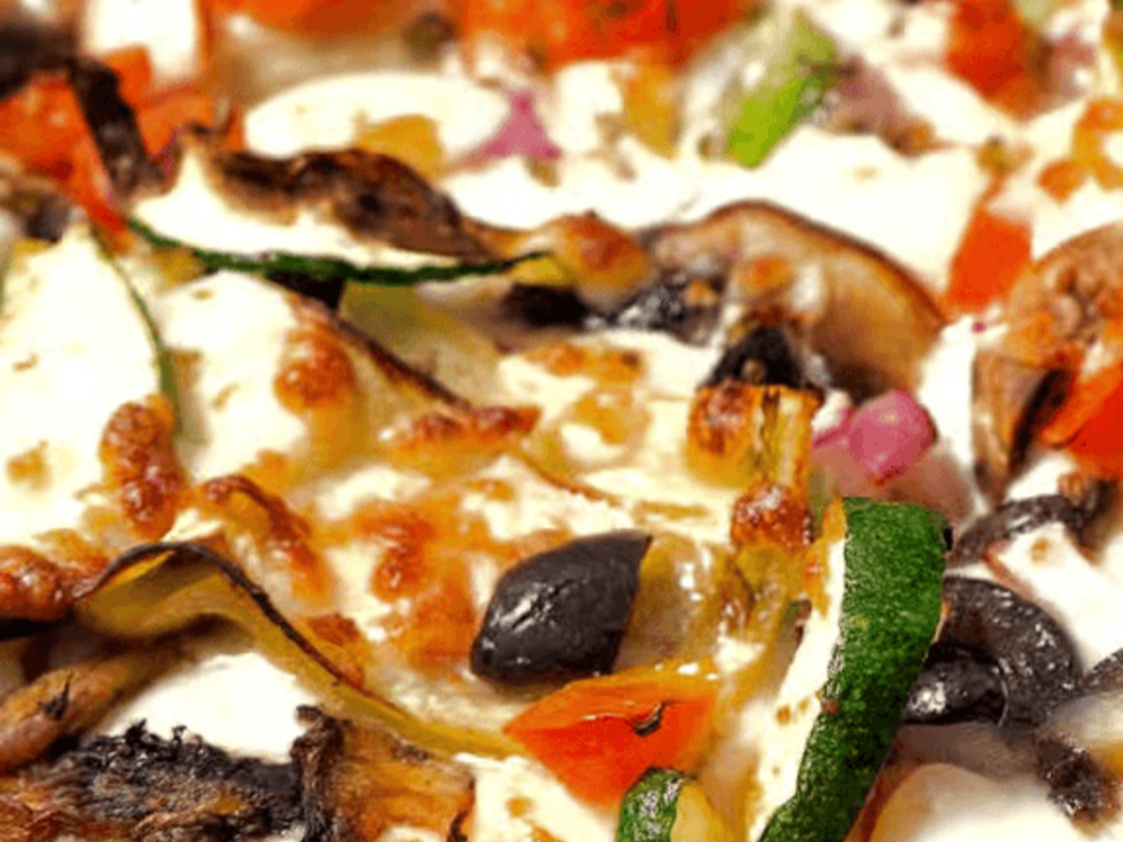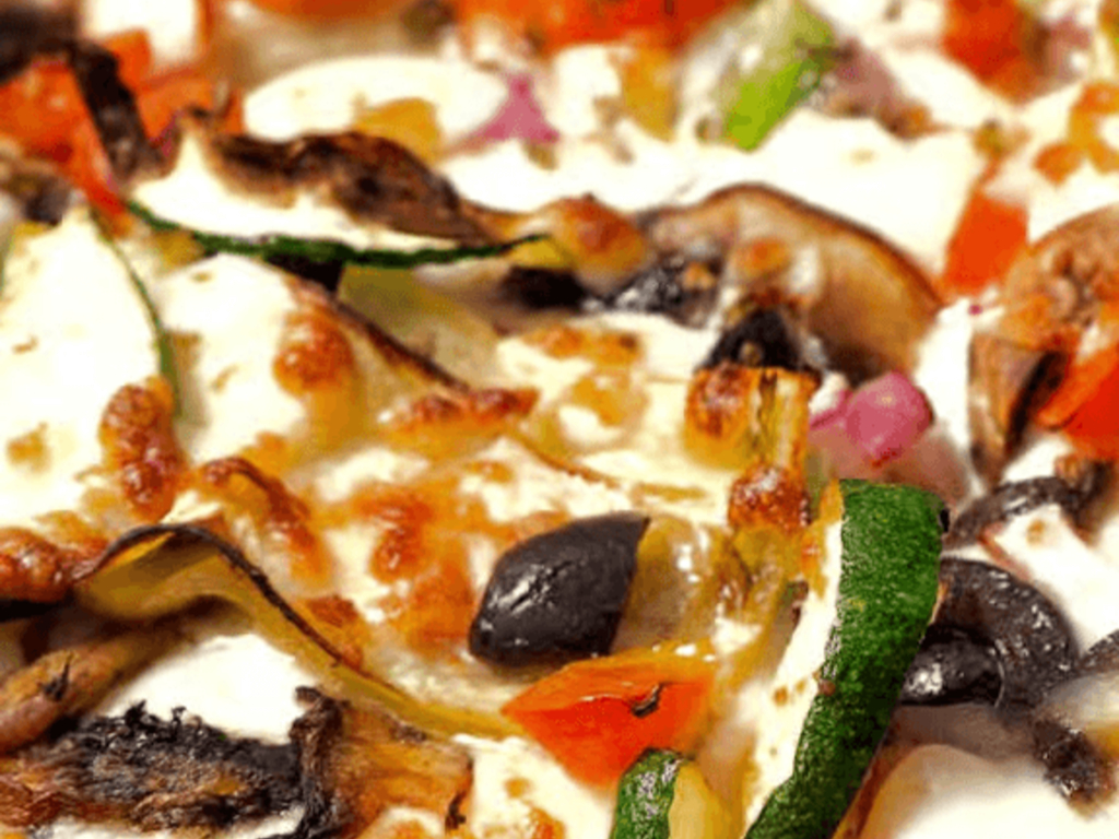 Classic White Sauce, Mozzarella cheese, Mushrooms, Bell Peppers, Red Onions, Black Olive, Diced Tomatoes. Also available with Classic Red Sauce.