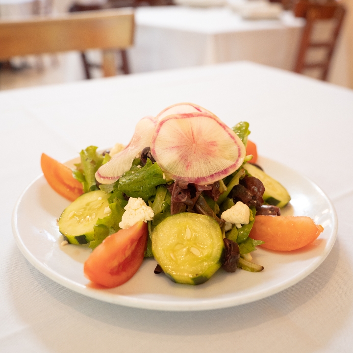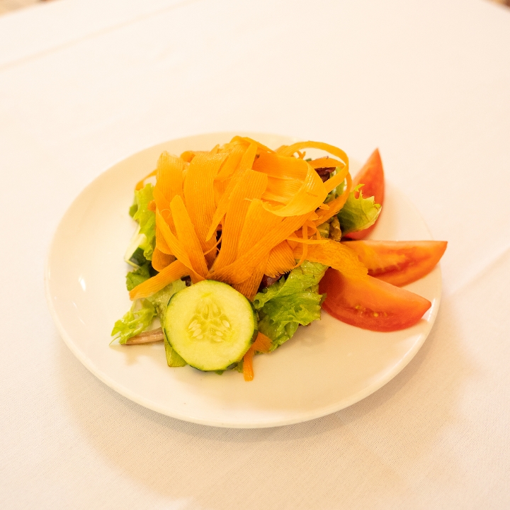 Baby lettuce, Roma tomatoes, carrots, cucumbers, balsamic dressing. (GF)