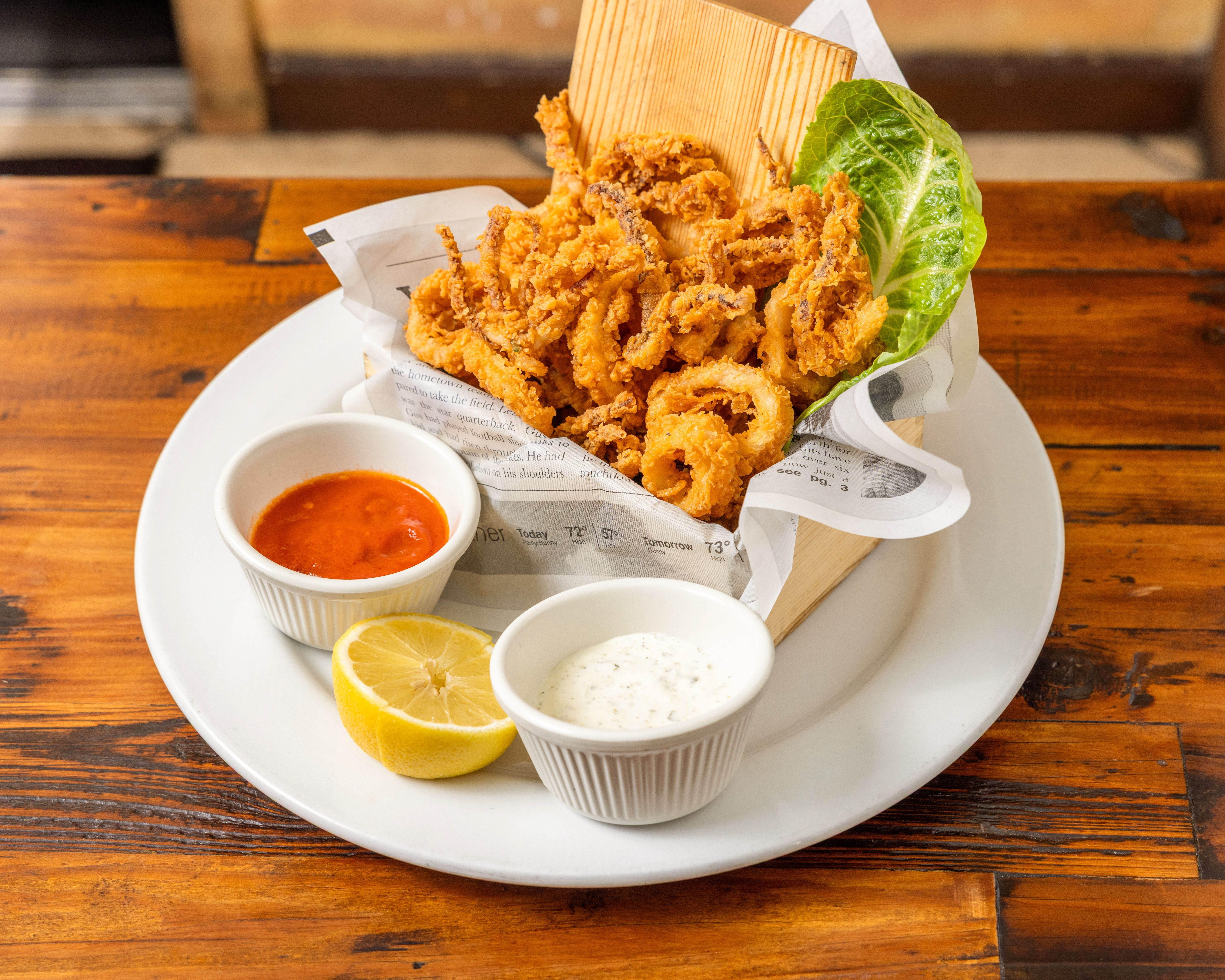 Deep-fried calamari, served with lemon, marinara, and tartar sauce.