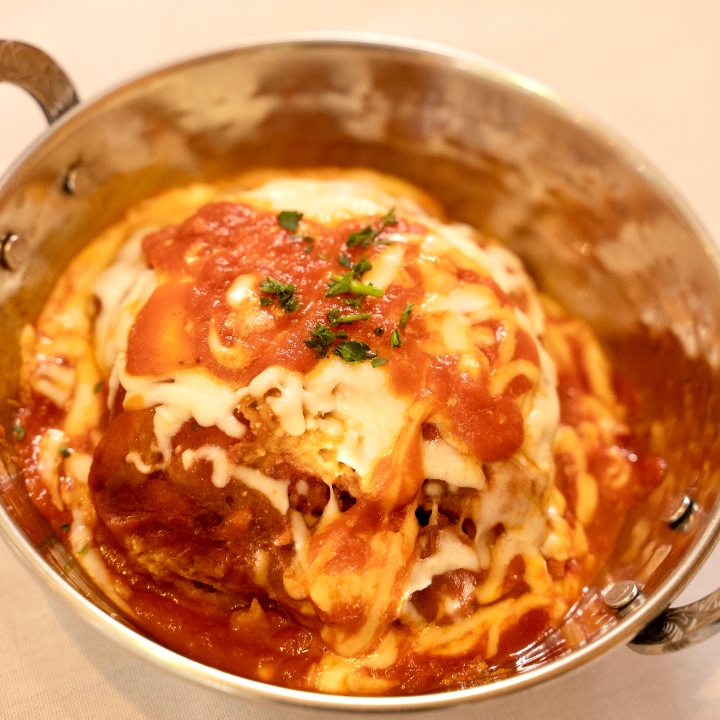 Breaded chicken breast topped with fresh marinara sauce and melted mozzarella.