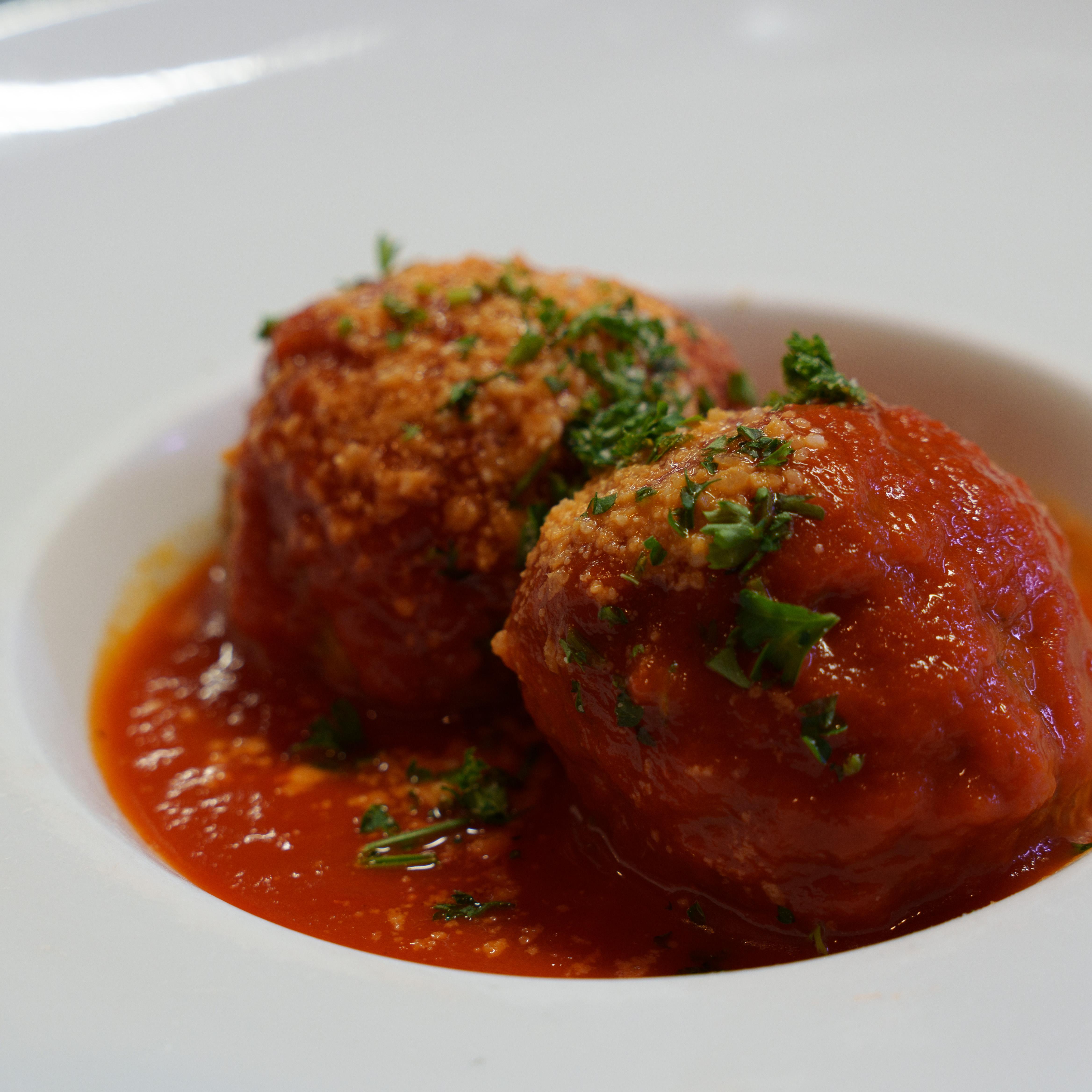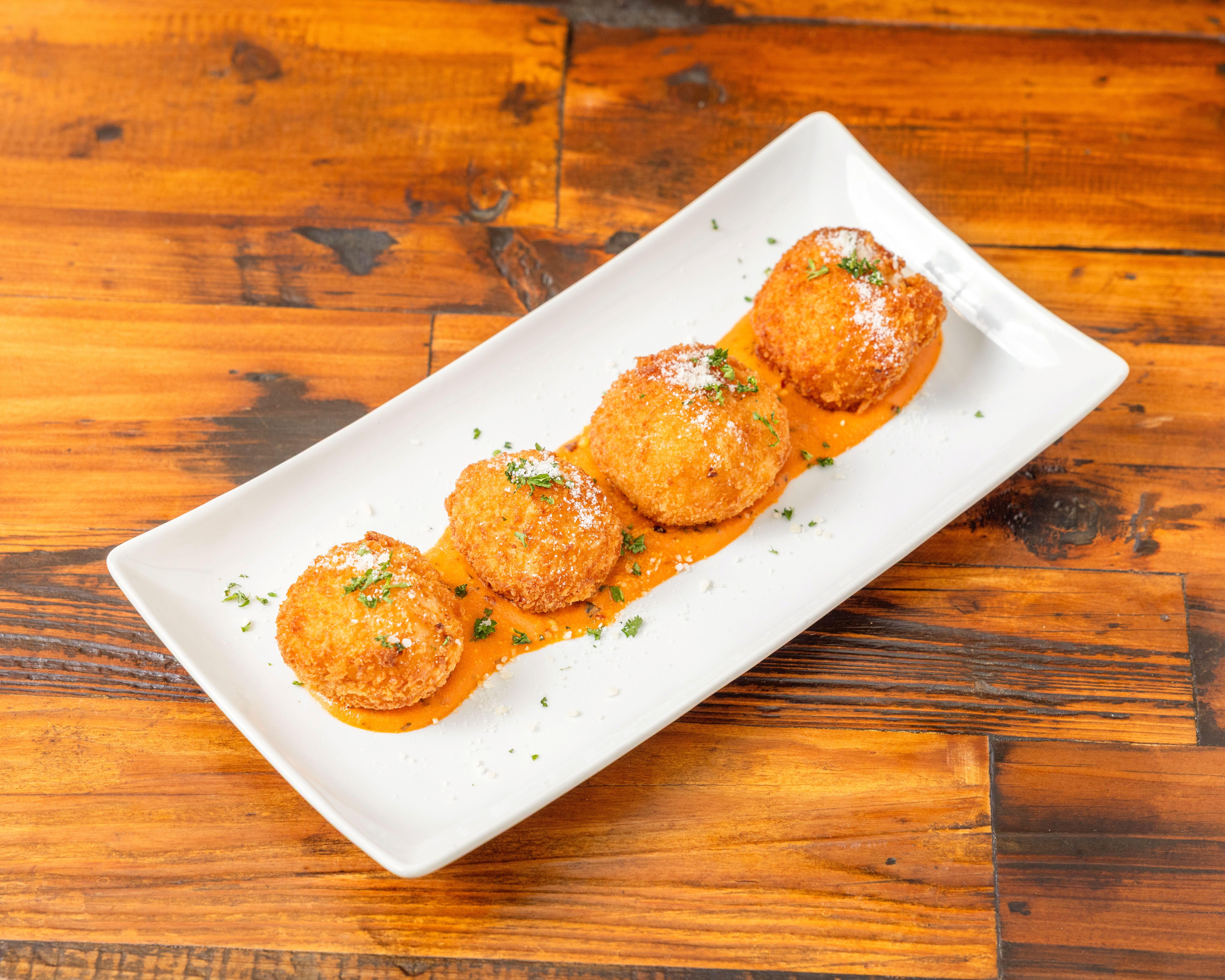 Sicilian shrimp risotto croquettes in vodka sauce.
