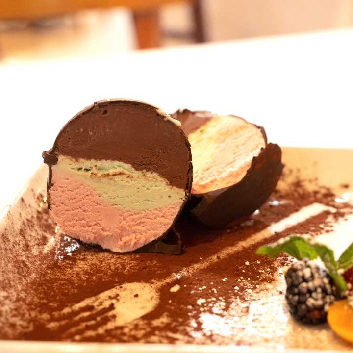 Roll shell pasta filled with ricotta cheese, candied fruits, chocolate, pistachio.