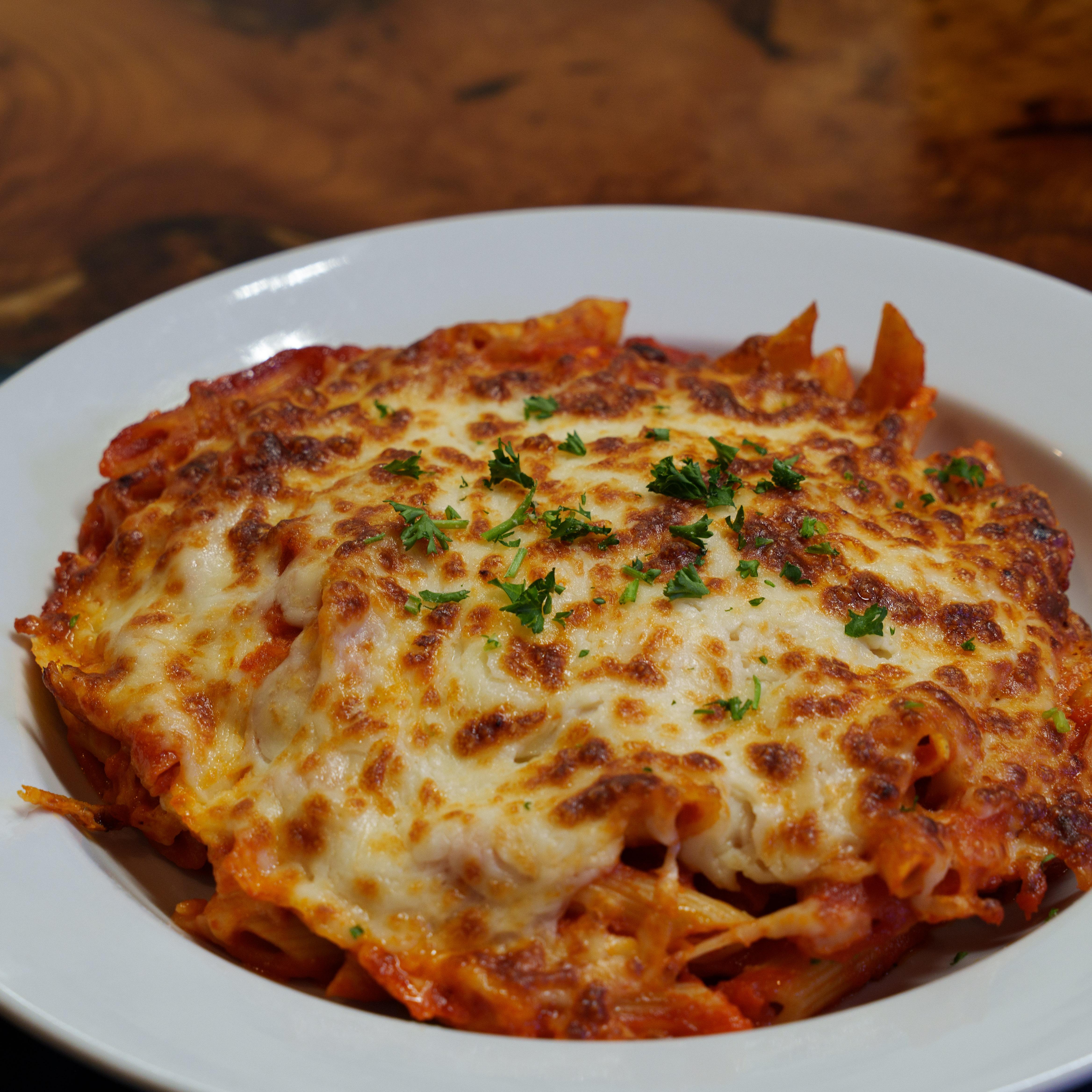 Baked penne with marinara sauce, eggplant parmigiana, fresh ricotta cheese, melted mozzarella.