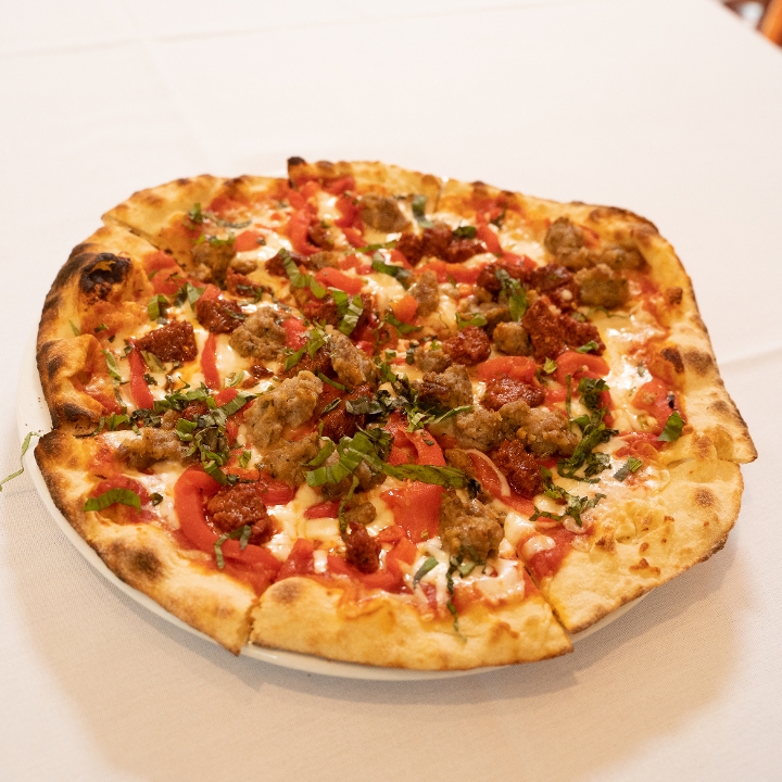 Fired roasted bell peppers, italian sausage, Nduja , olio Santo.