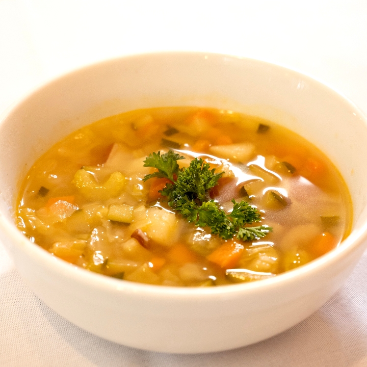 Locally sourced organic vegetables cooked in a light broth. (GF)